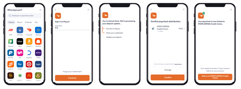 With real-time integration, members can instantly set up their direct deposit with a few simple clicks. All you need is your payroll or employee login to get started!